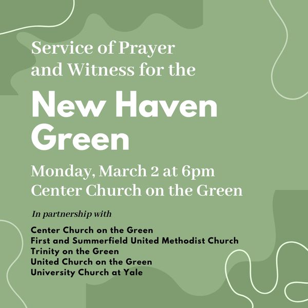Please join us for prayer, reflection, story, and song as we honor lives that shape this place of meaning and possibility. This service is a collaboration between faith communities on the green: Center Church on the Green, First and Summerfield United Methodist Church, Trinity on the Green, United Church on the Green, University Church at Yale. Light refreshments to follow.