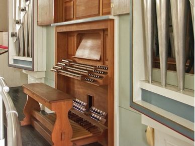 UCG’s organ is a stunning three-manual mechanical action organ. It was originally installed in 1966 by the Hillebrand company, and subsequently was rebuilt and enlarged by A. D. Moore (VT) in 1999. The organ comprises 53 ranks, 4 divisions, 3 manuals, and 42 stops. The instrument is a wonderful example of Baroque style organ-building, and is well-suited to supporting robust congregational singing as well as accompanying the choir. It is tuned in the Kellner Temperament and is thus a fitting organ for Bach and his contemporaries. While the organ presents the music of the 17th and 18th centuries extraordinarily well, it can also present the music of contemporary composers.